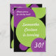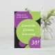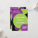 A smattering of circles in bright green and purple make globular shapes against a rich black background. Customised text sits within the shapes, some of which have a radial pattern. Use for any milestone birthday. Great for teens as well as adults. Available in alternate colours with matching products.