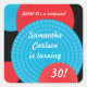 A smattering of circles in bright blue and redmake globular shapes against a rich black background. Customised text sits within the shapes, some of which have a radial pattern. Use as envelope seals or on favour bags for any milestone birthday. Great for teens as well as adults. Available in alternate colours with matching products.