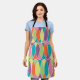 This apron has a design of overlapping eggs in Easter colours of purple, yellow, orange, pink, blue, and green. Pretty and festive for the season.