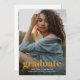 Overlay Modern Mustard Script with Three Photos Graduation Announcement