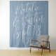 Welcome guests to your wedding or set up an epic selfie station with this simple and elegant backdrop featuring your names and wedding date in white calligraphy script lettering on a dusty blue background, oversized to take up the entire design area. Enter your personalisation, then use the Design Tool to adjust size and positioning for a custom look.