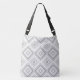 Ladies large cross over tote bag with modern grey patterned design, white background can be changed to any colour, and text can also be added to personalise.