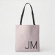 Oversized Monogrammed Initials Blush Pink Black Tote Bag