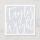 Modern business cards in barely there pastel grey feature your name or business name in white hand sketched cursive script lettering, oversized to extend off the edges of the card. Enter your name, then use the design tool to reposition or resize as desired. Customise the back with your full contact information.
