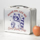 This is a standard metal lunchbox that appears to work just fine. We designed this box ourselves with an uploaded photo and custom text on the front and back. It looks absolutely beautiful except the front of the lunchbox is not centered like it shows in the photo. The print borders don't align with the inset flat part of the box where the preview photo online showed it perfectly centered in there. The back looks nice and centered though.