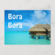 Overwater bungalow on Bora Bora text postcard
