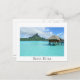 Postcard with a luxury overwater bungalow resort in the clear blue lagoon of the pacific island of Bora Bora, near Tahiti in French Polynesia with a white border and in black the text: 'Bora Bora'.