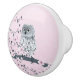 Owl And Cherry Blossoms Pink Grey Ceramic Knob