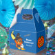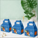 This is a cute personalised favour box for any kids Halloween party. It features a bright orange owl dressed in a witch hat and perched on a broom in front of a yellow crescent moon and black bat. At one side is a tiny white ghost, and a spider hangs from the owl's hat. The image is placed on a bright blue background, and printed on the front and back. Light orange text says BOO! and SPOOKY. White text says "Happy Halloween" and the child's name. Each end of the box has a grinning orange jack o' lantern. Fun for kids! *Thanks to Real Deal Clipart for clipart used to create this design.