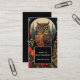 Business cards with a cool looking owl with a piercing stare. A full moon in the back with a garden of red flowers.