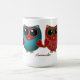 Owl be loving you-is a digital graphic art design. In the centre is a pair of his and her owls hanging out in a floral tree holding wings. The female owl is red with pink and gold scroll work and green eyes. The male owl is blue with aqua blue eyes. The owls have red and gold hearts for wings and a red heart face too. The pair sit on a brown tree limb with little pink flowers and green leaves. The background is a pastel blue-green representing sky and ground. At the top is decorative red text that reads: Owl be loving you always. A little red heart and flowers embellish the text. One text area is in place at the bottom for you to edit and personalise. Edit the text to say anything you like. Delete the text if it's not wanted. -This design does vary a bit depending upon the product.