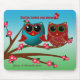 Owl be loving you-is a digital graphic art design. In the centre is a pair of his and her owls hanging out in a floral tree holding wings. The female owl is red with pink and gold scroll work and green eyes. The male owl is blue with aqua blue eyes. The owls have red and gold hearts for wings and a red heart face too. The pair sit on a brown tree limb with little pink flowers and green leaves. The background is a pastel blue-green representing sky and ground. At the top is decorative red text that reads: Owl be loving you always. A little red heart and flowers embellish the text. One text area is in place at the bottom for you to edit and personalise. Edit the text to say anything you like. Delete the text if it's not wanted. You may also delete the red upper text if you do not want it. This design may vary a bit depending upon the product.