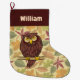 Cartoon illustration of owl sitting on tree branch. Custom text.