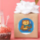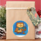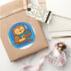 A glossy, vibrant round sticker featuring a cozy cartoon owl enjoying a steaming cup of coffee at a café table, set against a bold blue background. With kawaii styling, warm details, and crisp contrast, this design is perfect for planners, laptops, water bottles, and anyone who loves cute animals and coffee culture.