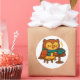 A glossy, vibrant round sticker featuring a cozy cartoon owl enjoying a steaming cup of coffee at a café table, set against a clean white background. With kawaii styling, warm details, and crisp contrast, this design is perfect for planners, laptops, water bottles, and anyone who loves cute animals and coffee culture.