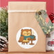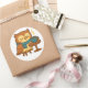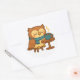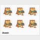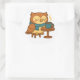 A glossy, vibrant round sticker featuring a cozy cartoon owl enjoying a steaming cup of coffee at a café table, set against a clean white background. With kawaii styling, warm details, and crisp contrast, this design is perfect for planners, laptops, water bottles, and anyone who loves cute animals and coffee culture.