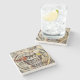 The coasters are gorgeous, a quality feel and heavy weight. They look like a precious archeological find. A rustic stone juxtaposed with a modern floral black and white print. I like the way the print goes slightly imperfect on the cut stone edges giving them a kind-of natural beauty.