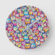 Owl faces cartoon doodle whimiscal birds pattern round clock