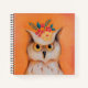 Whimsical owl adorned with pretty flowers. This woodland creature poses proudly on a bold orange background. With fluffy white feathers and a curious gaze, let it capture you with its charms!