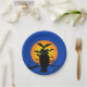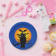 Halloween Paper plates with image of owl silhouette against moon with bat with blue background