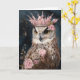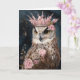 An owl in a crown with pink flowers all occasions blank inside greeting card