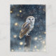 A beautiful owl in the snow with Solstice Greetings on the back of this holiday postcard for the Winter Solstice or Yule.