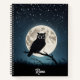 A black owl, speckled with white, is perched on a branch, silhouetted by a large, full moon on a star-filled night. Very beautiful image, perfect for anyone who loves owls and fantasy.