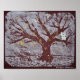 This lovely burgundy white and gold tree print is from my original linocut print which was finished by hand to add a cute snowy white owl and gold leaves.