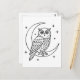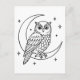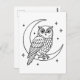 This mystical line drawing features a wise owl perched on a glowing crescent moon, surrounded by sparkling stars. A magical blend of nature and the cosmos, perfect for those who love celestial symbolism and nocturnal beauty.