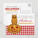 Owl on Pumpkin Halloween Pumpkin Party Gingham Invitation Postcard.