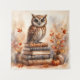 Tapestry features watercolor artwork of a serious owl perched on a stack of books in the fall season, surrounded by autumn decor including a pumpkin. Warm colour scheme includes oranges, browns, and neutrals. Great for owl lovers and bibliophiles! Maybe you're just a girl or guy who loves owls and books...and the autumn aesthetic! If so, this cosy avian academia artwork is for you.
