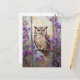 A majestic owl perches gracefully among delicate purple flowers, blending mystery and nature in a captivating scene. The intricate details of the owl's feathers contrast beautifully with the soft floral hues, creating an enchanting and serene artwork.