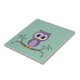 White Ceramic Tile has a cute purple cartoon owl on a limb with a green polka dot pattern background. Customisable.