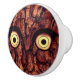 Feature an owl face ,made from brown treebark look design, with big yellow eyes. Cute and rustic.
