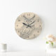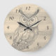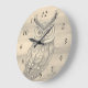 Owl Sepia Beige Wood Rustic Numbers Large Clock