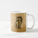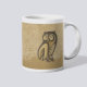 Owl icon on beige grunge background. Symbol of wisdom and wealth.