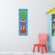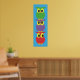 3 cute owls on a blue background. Slim, vertical. Fits in the narrow space between things. Hand drawn owls with 2 of them sitting on top forming a stack of cute owls. byEML