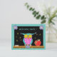 Owl with chalkboard and apple back-to-school postcard