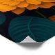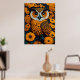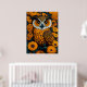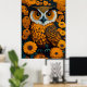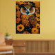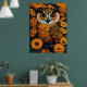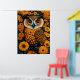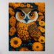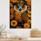 Owl with large eyes in front of flowers poster