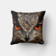Owl. Color close up color photograph image of an owl's head and face showing beak, orange colored eyes and feathers.
