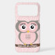 Personalised with your name or you favourite one or two word encouraging quote for your inspiration or maybe even for those close to you to be randomly inspired through the simple words they see in front of them due to you kindly inspiring those you pass by. words are powerful, words inspire, motivate, encourage, spread cheer, love and kindness, cute pink wise kind owl iPhone Cases.