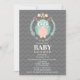 A baby shower invitation featuring an illustration of an owl inside a wreath decorated with flowers, leaves, and an acorn. Personalise the text.