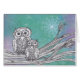 An original, hand drawn, cute owl design scanned on to different backgrounds to make a truly unique card. A great gift card for owl lovers