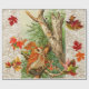 OWLS AMONG FALL LEAVES IN WOODLAND WRAPPING PAPER