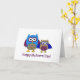 Cute Mothers Day card featuring an illustration of an adorable mother and baby owl. "Happy Mothers Day" message beneath.