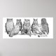 All these owls I drew by hand with a ballpoint pen and grey scale makers. I drew them each individually then assembled them in Photoshop. They include: Blakiston’s Fish Owl, Great Horned Owl, Eagle Owl, Long Earred Owl, Great Grey Owl, Snowy Owl, Northern Pygmy Owl, Saw Whet Owl, Elf Owl, and a Barn Owl.
