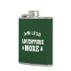 The flask itself is fine. It’s a cheap flask, obviously bought in bulk, however am prepared to overlook that. Given that it is a personalized item, I would have liked to have seen gift boxing instead of the generic packaging. Terrible printing, and/or quality. It’s a cheap, tacky vinyl. It is not cut straight and is also applied in a way that it is overhanging the bottom, causing the glue to catch on items and it will eventually roll and tear, damaging the wrap.