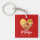 Own Photo Red Heart Frame Modern Calligraphy Key Ring