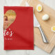 Own Photo Red Heart Frame Modern Calligraphy Tea Towel