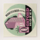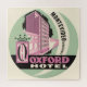 Vintage illustration South American luggage label or travel poster art from the Oxford Hotel in the capital city of Montevideo, Uruguay featuring a building with the text is wearing a crown. Fun retro colours using pink, cream and green.